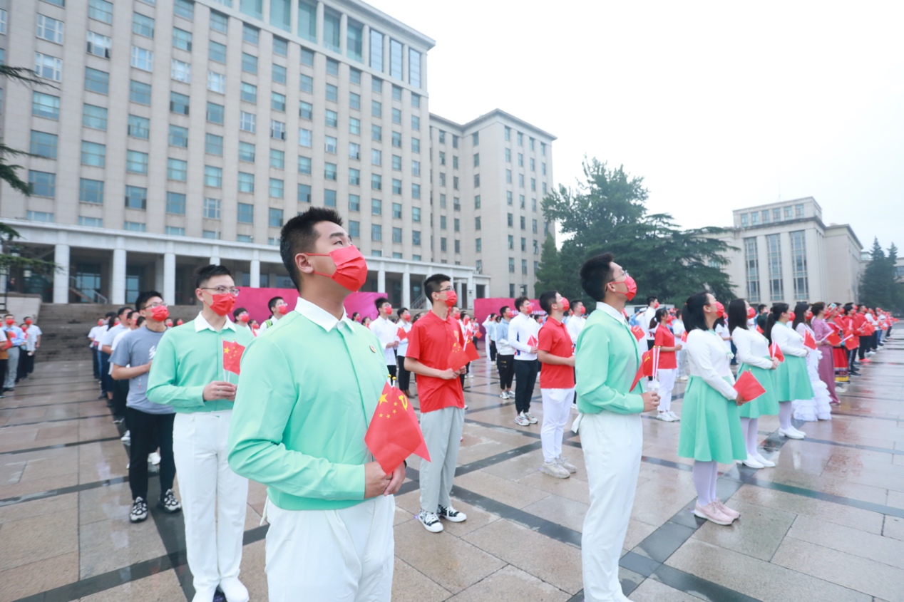 “五星红旗迎风飘扬/胜利歌声多么嘹亮/歌唱我们亲爱的祖国/从今走向繁荣富强……”全体师生挥舞着手中鲜艳的国旗和党旗,共同唱响《歌唱祖国》。歌声伴朝阳,水木湛清华,全体师生将以百倍的信心、十足的干劲开启新学年。
