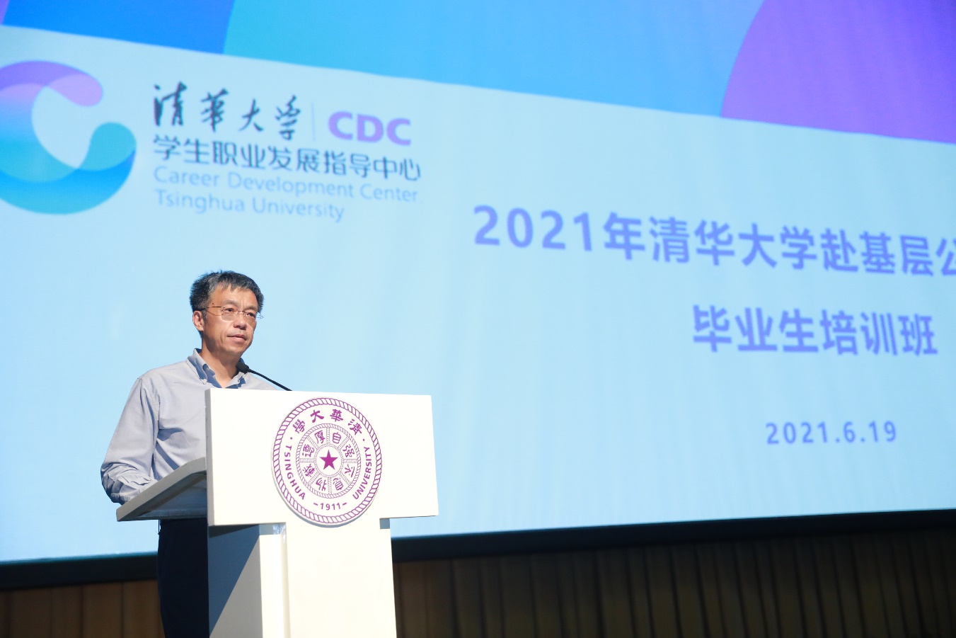 在5月30日举行的开班仪式上,过勇回顾了定向选调的历史,并结合党史学习教育和实际工作案例,向同学们阐述为什么组织很重要,勉励同学们相信、依靠并服从组织,自觉接受组织安排和纪律约束,坚定信念,加紧提升,积极学习,勤勉工作,传承清华光荣的红色基因,回归初心,努力“为中国人民谋幸福,为中华民族谋复兴”。
