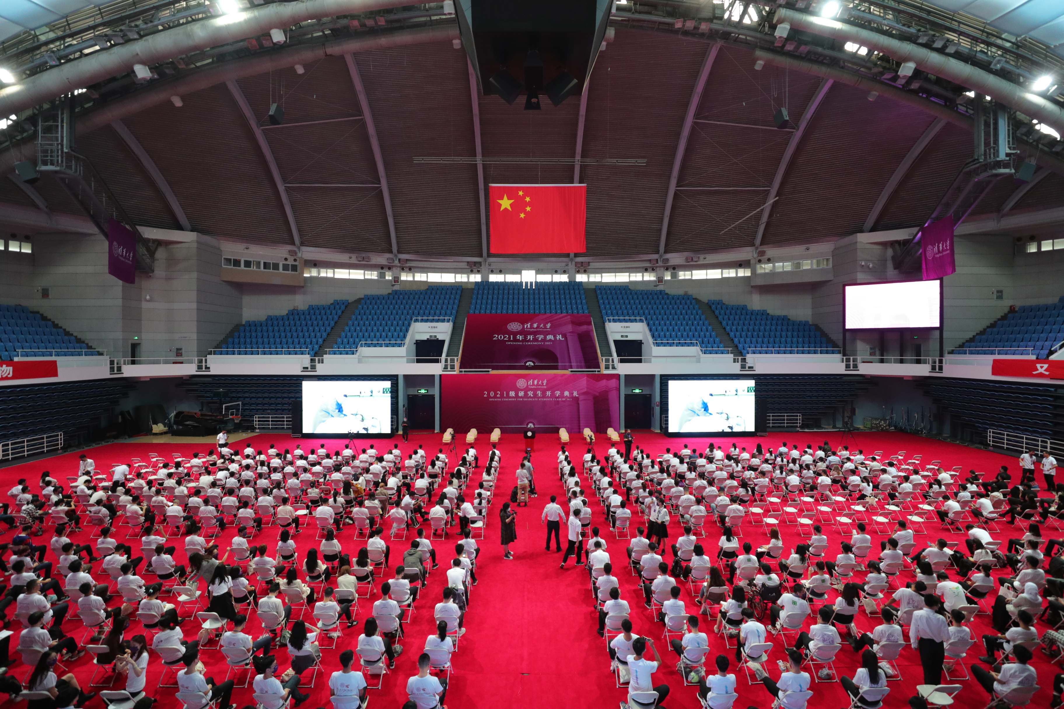 鉴于目前疫情防控形势,本次开学典礼采用线上线下结合的方式举行,线下设置了包括五道口金融学院和深圳国际研究生院在内的35个会场,并向全球同步双语直播。近500名新生代表在综合体育馆主会场参加典礼,4000余名新生在分会场观看现场直播。