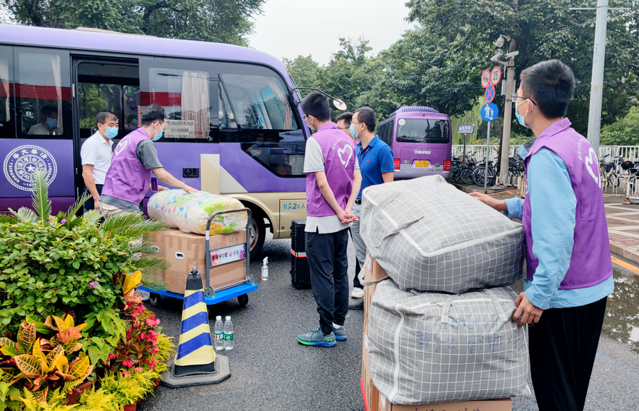 宿舍楼志愿者协助新生接收和搬运行李