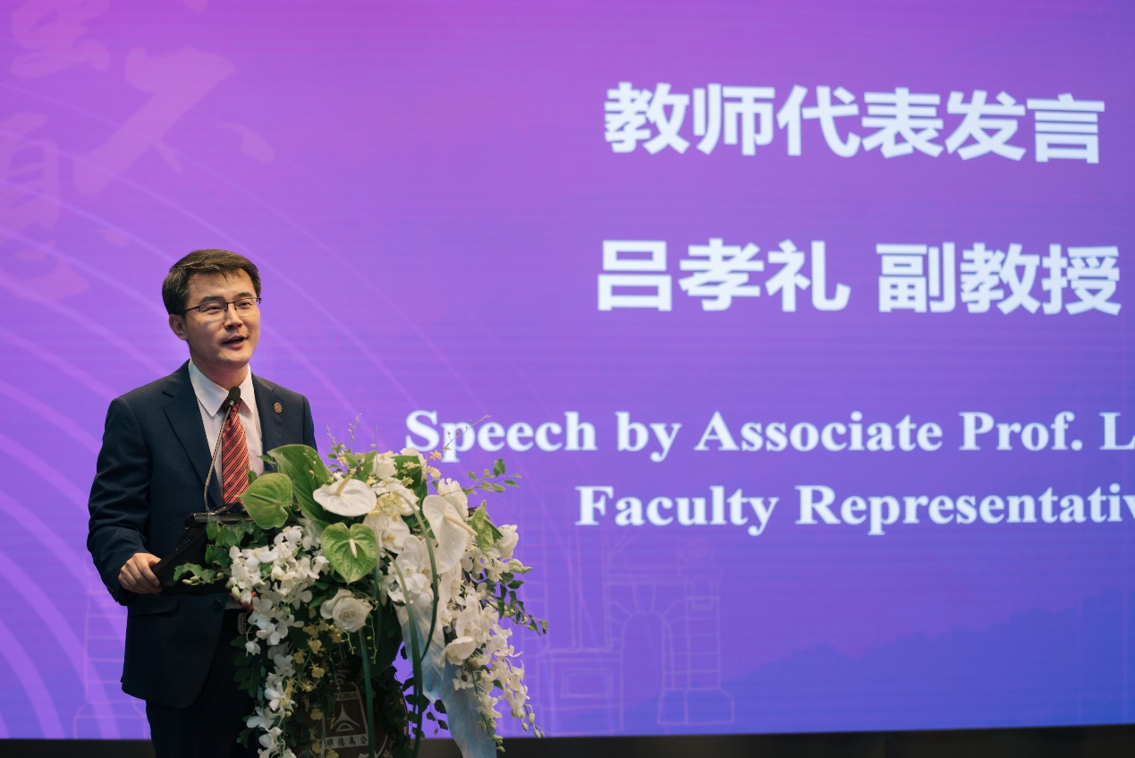 公管学院副教授吕孝礼作为教师代表致辞。他从自己的观察和经历出发为新生们提出几点建议:首先,重新思考研究和工作中的价值创造,其中包含两个要素:一个要素是可以无愧于心的互动对象,从而努力产生学术价值和公共价值;另一个要素是把价值的判断拉向纵深,从更长远的角度来看待今天的选择和产出。第二,“理解”并拥抱多样性。第三,做更专业的自己,从自己的领域来提升专业性的能力。吕孝礼希望同学们能在经历风雨历练之后,为社会创造更多公共价值,拓展理解和解释公共管理现象的知识边界。