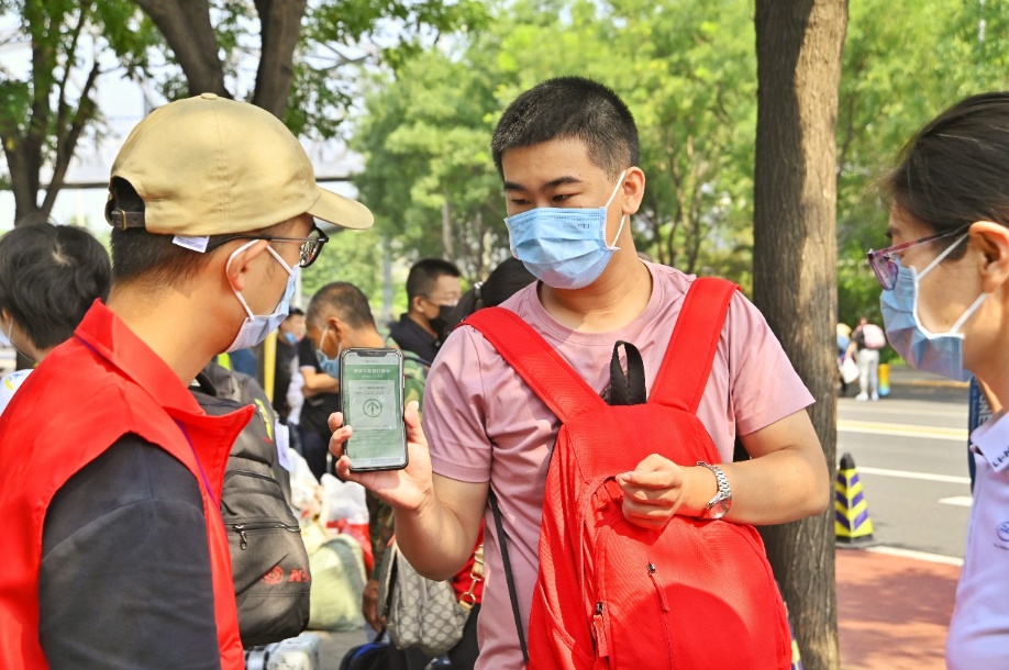 考虑到新生来自全国各地,学校在北京站、北京西站为外地新生提供接站服务。第一批接站引导志愿者清晨便从乘车学校出发,抵达站点后分成两个分队,分别负责出站口引导和乘车点身份核验。志愿者在出站口高举乐动平台引导牌,热情迎接远道而来的新生,为他们带来“第一站的温暖”。在乘车点的志愿者认真进行新生及亲友的身份核验工作,并向他们宣讲校园防疫须知、讲解清华校园文化等。