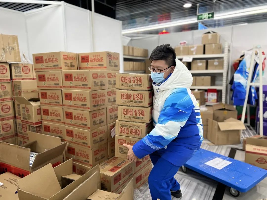 志愿者在后台搬运物资