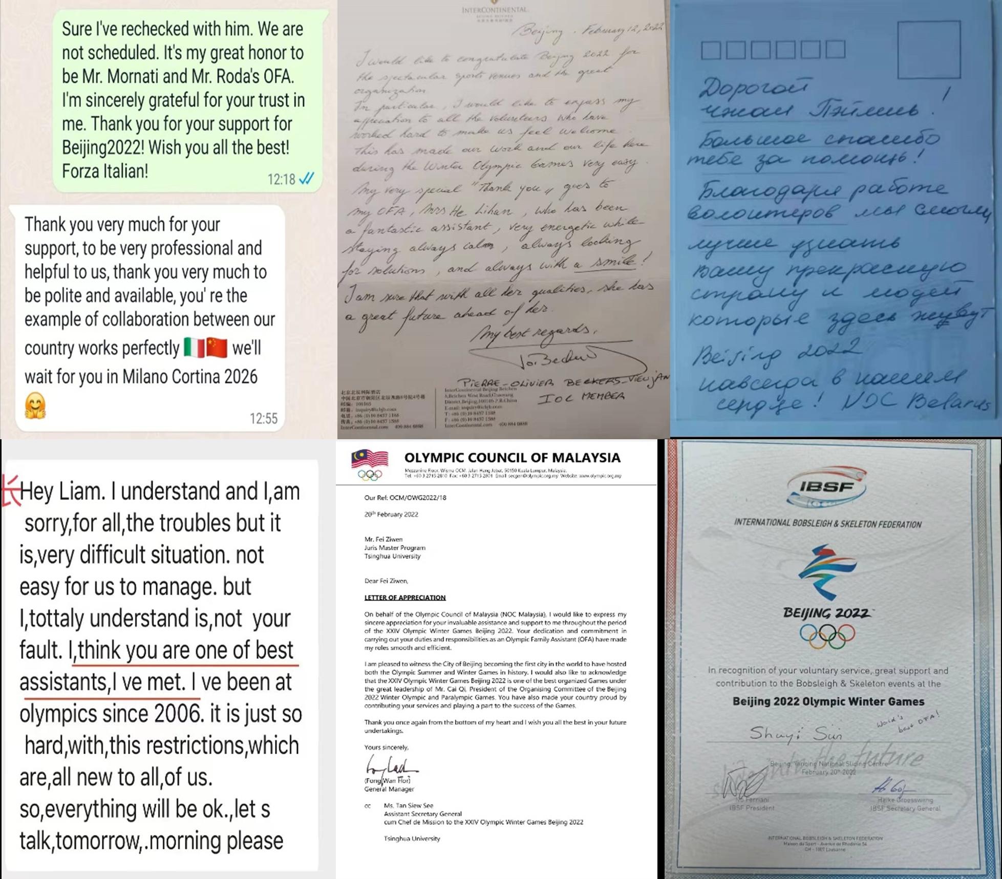 部分OFA志愿者收到的感谢信