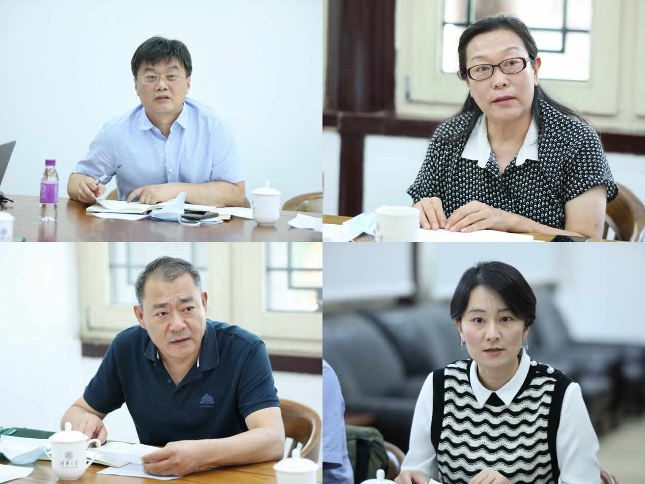 数学系党委书记叶俊、艺教中心主任赵洪、语言教学中心主任吴运新、写作与沟通教学中心主任曹柳星在汇报院系、中心教研成果的基础上,分享了对教学系列教师职业发展及课堂教学评价系统优化的意见和建议。