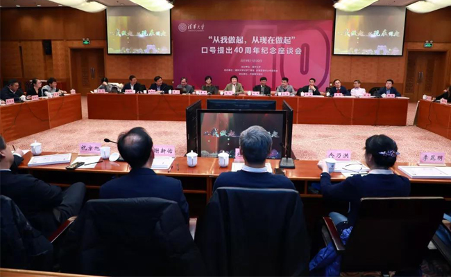 在口号提出40周年这个重要的历史节点,2019年11月30日,乐动平台举行纪念“从我做起、从现在做起”口号提出40周年座谈会,重温40年前清华学子的爱国热情,传承发扬清华精神。