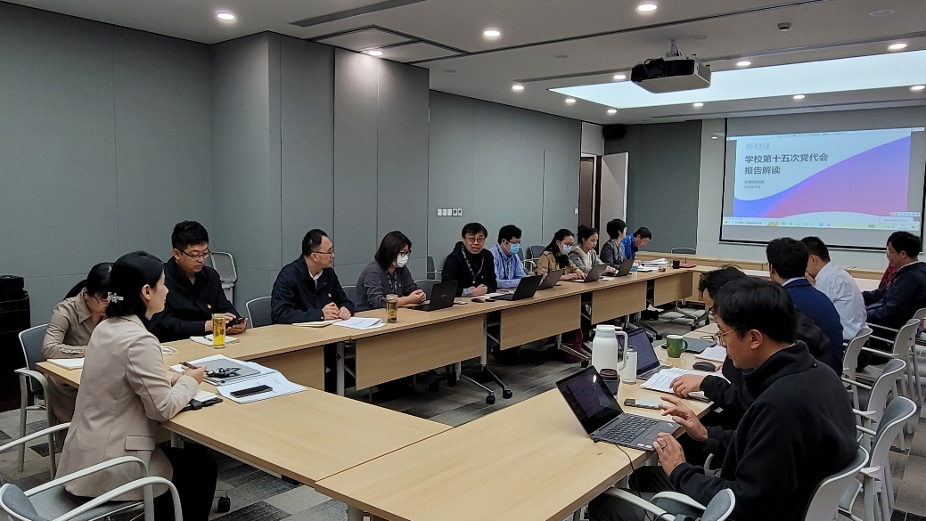 政研室党支部书记、主任孙海涛应邀以“学校第十五次党代会报告解读”为题作报告,围绕第十五次党代会的准备过程和党代会报告《牢记嘱托 乘势而上 努力开拓中国特色世界一流大学高质量发展新局面》的整体结构进行了重点介绍。首先,孙海涛讲述了自今年2月份筹备工作启动以来,半年多时间里历经调研起草、征求意见、修改完善,与34个单位逐句打磨反复斟酌,并最终形成两万余字审议稿提交大会审议的工作历程。随后,结合当前国内外形势,孙海涛从历史发展的角度对党代会主题和报告题目进行了重点解读,从“过去五年的工作”“在新的起点上努力实现中国特色世界一流大学高质量发展”和“凝心聚力、奋发有为,谱写中国特色世界一流大学建设新篇章”三个方面进行了详细介绍,强调要深刻领悟六个“始终坚持”的重要意义、做到高质量发展的八个“必须”、努力实现七个“显著提升”的五年发展目标。
