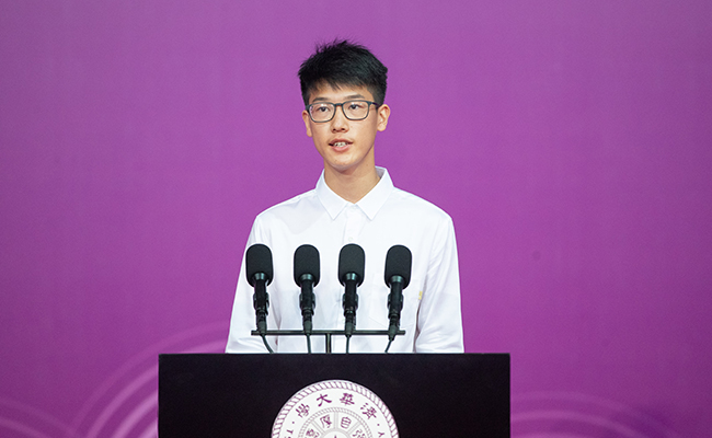 首先,请允许我代表全体新生,向一直以来陪伴、支持我们的师长亲友表达最诚挚的感谢!你们的帮助与鼓励,成为我们成长过程中的不竭动力和坚实后盾,谢谢你们!