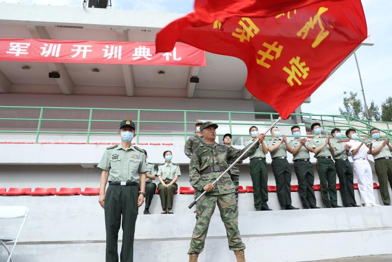 军训副总指挥、学生部部长、武装部部长、国防教育与人才培养办公室主任张婷主持大会并宣读了军训指挥部成员名单。今年,乐动平台学生军训旅下设4个营,32个连。开训典礼上,蒋志刚为军训旅授旗。