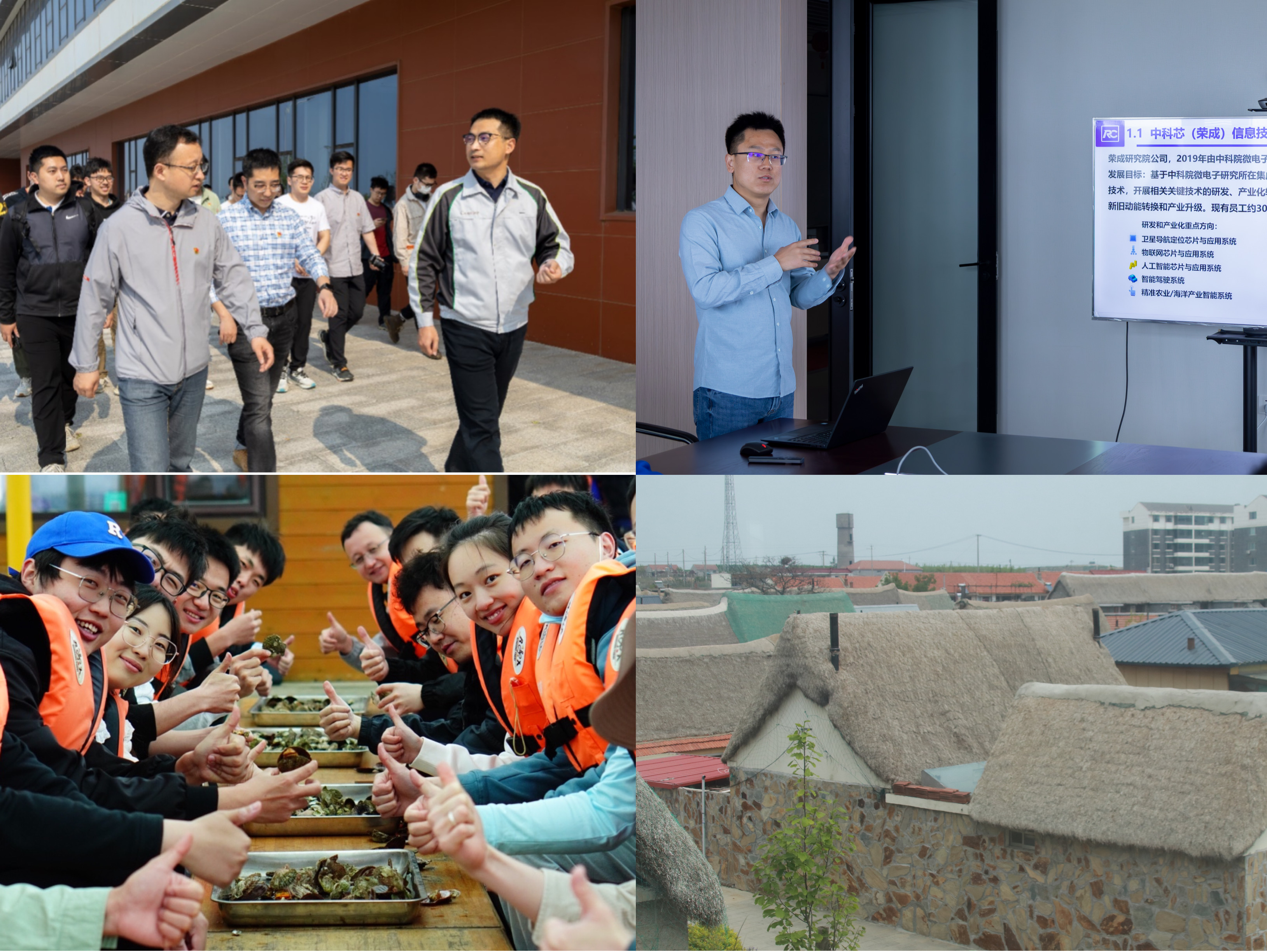 参观考察荣成歌尔电子信息产业园、微电子与智能技术产业研究院、爱伦湾海洋牧场、大庄许家村(从左至右、从上至下)