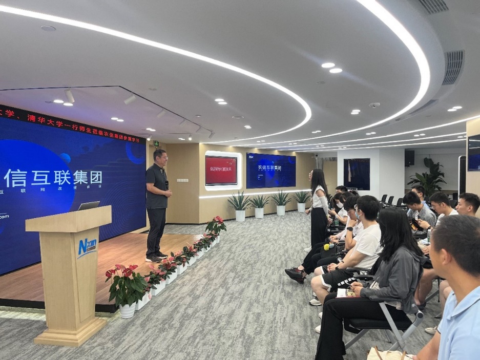 在活动首站北京农信互联科技集团有限公司,大家认真聆听介绍,与工作人员就推动中国农业数字化转型升级、通过数字蓄能助力乡村振兴开展深入交流。