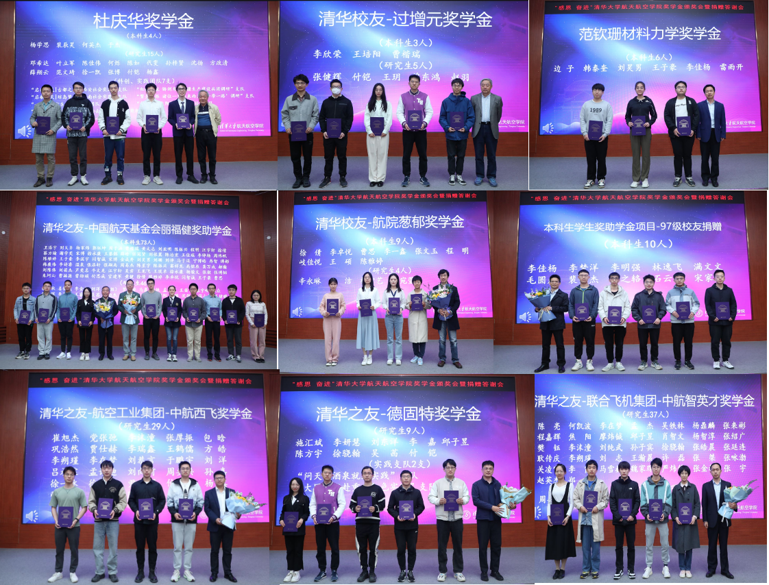 航天航空学院院长曹炳阳表示,学院正在不断完善奖助学金体系,通过设置学业、科研、社工、实践、志愿等十余类奖学金项目实现全方位覆盖,他同时感谢各界团体、企业和校友对完善奖助学金体系的资助。