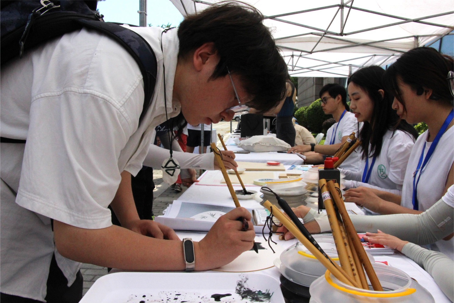 除作品展卖以外,本次活动还以“传承非物质文化遗产”为主题,设置版画、剪纸、书法、扇面、扎染等特色摊位,使广大师生在艺术实践中感受非遗魅力。