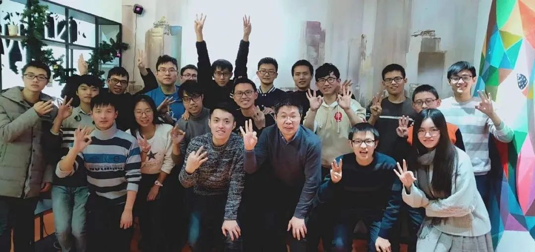 担任水利系2017级带班辅导员期间与水工73班主任和同学们一起进行团建(前排左4)