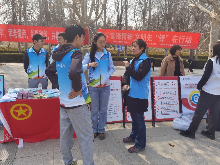 3月15日,自动化系自33班的志愿者来到中关村软件园,参加“学雷锋月”主题活动和3·15主题宣传活动,通过现场讲解提高居民的防范意识和维权意识。