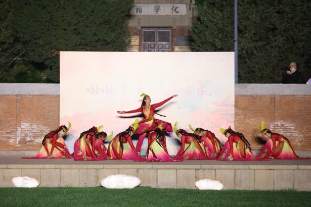 乐队弦歌绘丝路,诗朗诵情韵流篇章。第三篇章《丝路风华》与现场所有清华学子会面,带来古丝绸之路与现代“一带一路”的和谐共鸣。首先由校民乐队带来《丝路拾光》,一幅幅美丽的丝路画卷在观众眼前缓缓展开,协奏表演《葡萄熟了》则生动描绘了新疆人民在葡萄收获季节载歌载舞的场面。中国音乐学院带来了二胡三重奏《姑墨》,舞蹈性节奏的使用让音乐动力十足。最后,中央民族大学带来舞蹈表演《石榴花开》,铃鼓声声彩裙飞舞,维吾尔族少女尽情欢歌。她们用曼妙激昂的舞姿赞颂这美好的时代,声声鼓鸣象征中华民族团结的力量。