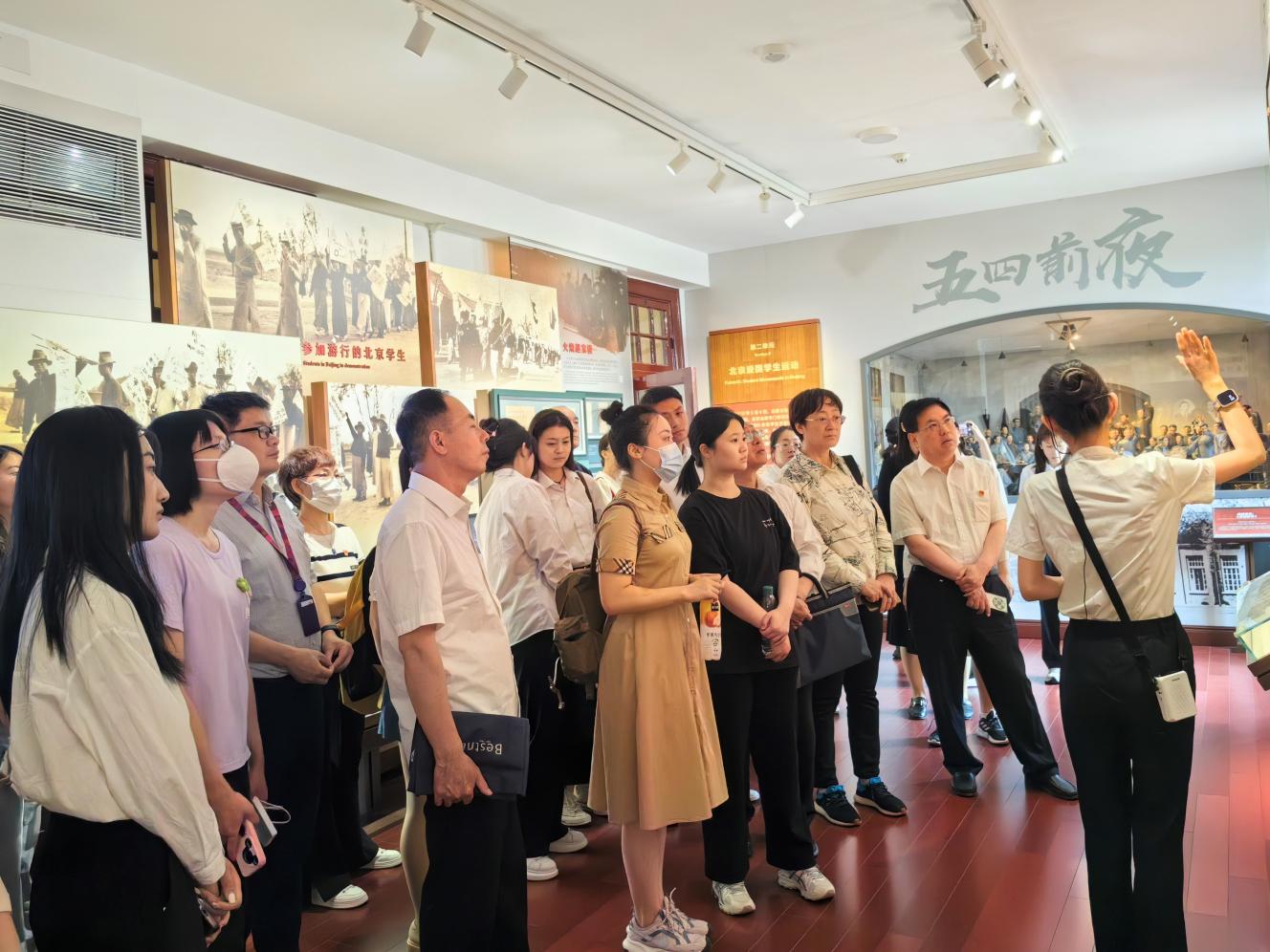 全体党员有序参观了红楼内各个展厅,在讲解员的引导下,大家仔细观看一张张历史照片、一件件珍贵文物、一个个沙盘模型,认真聆听李大钊、陈独秀、毛泽东等传播马克思主义和民主科学进步思想的历史故事,学习传承五四精神,重温共产主义在中国的起源历程,感悟伟大建党精神。