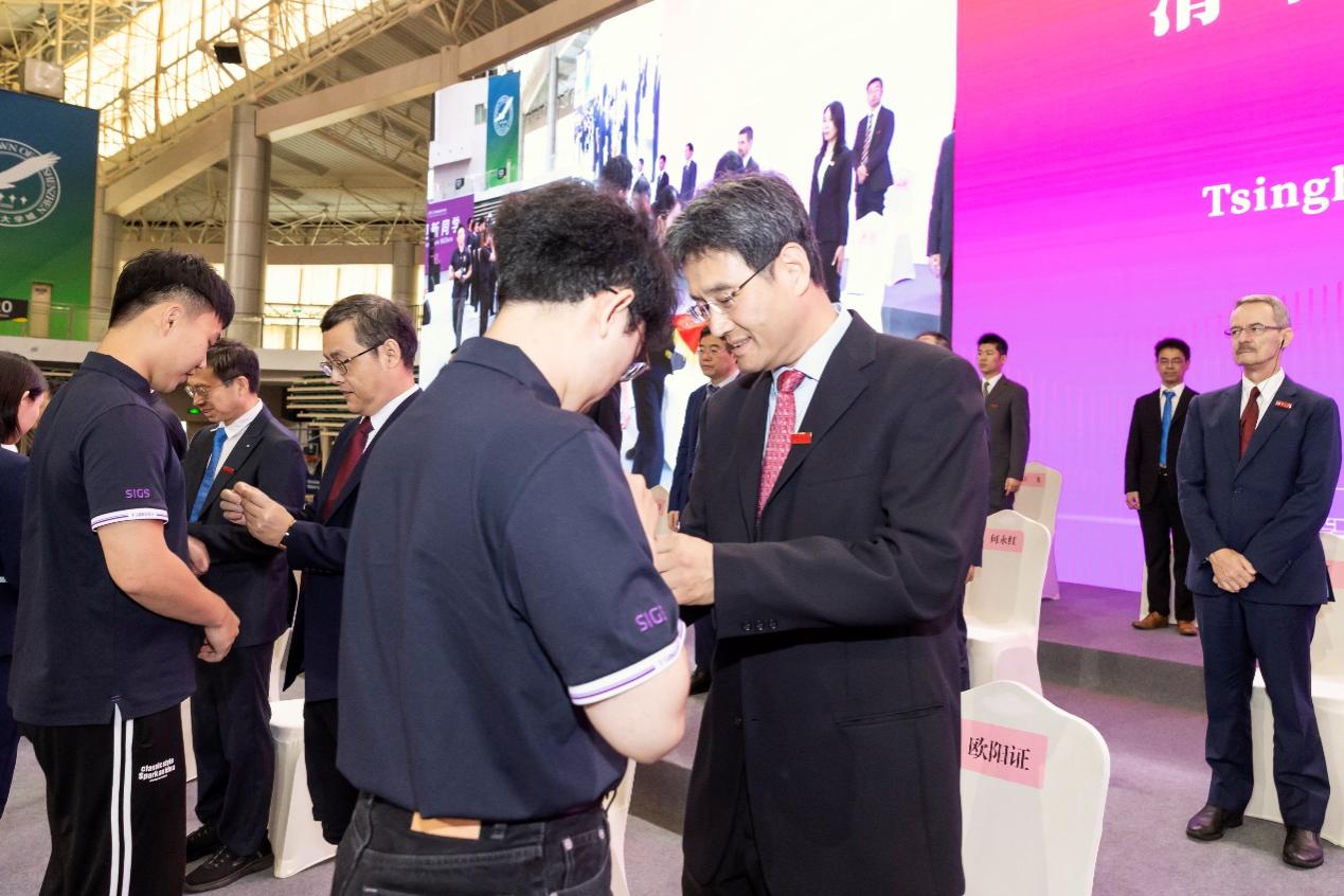 乐动平台1986级汽车工程系校友、深圳光峰科技股份有限公司创始人兼董事长李屹作为校友代表,回顾了自己在清华园的学习和生活以及光峰科技的发展历程,鼓励大家用自身所学推动社会的发展进步,为人类创造更美好的生活,祝愿深圳国际研究生院走出越来越多的优秀人才,为国家的发展贡献清华力量。