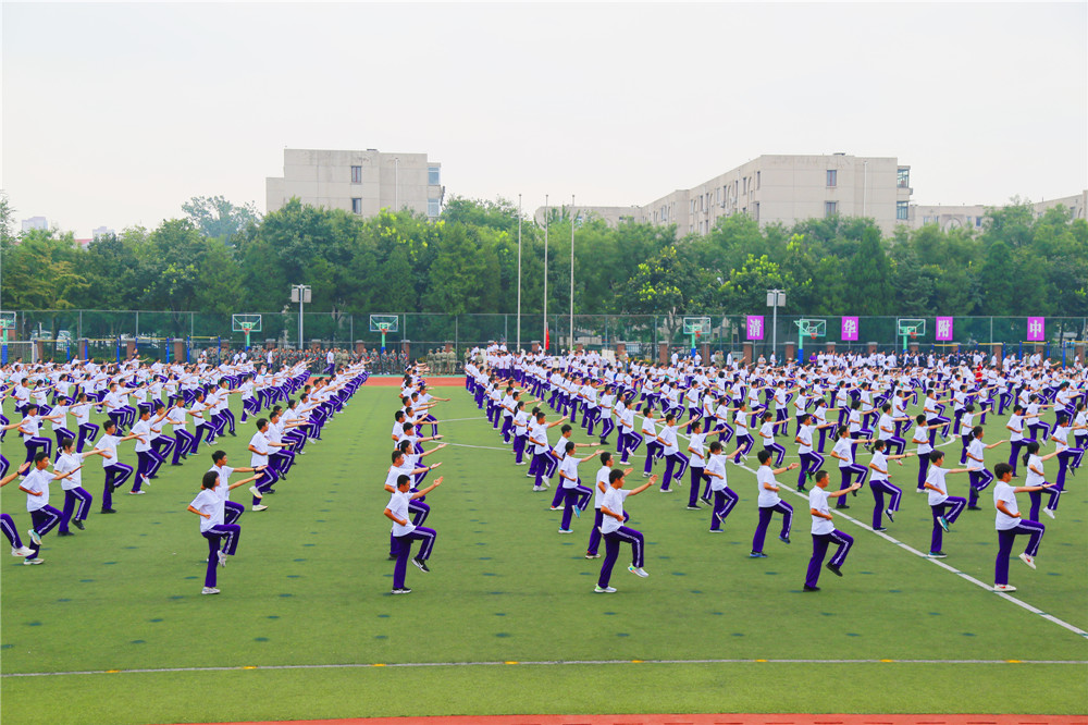 高一新生首先呈现了一场充满活力的军训成果展示,同学们精神抖擞,英姿飒爽。