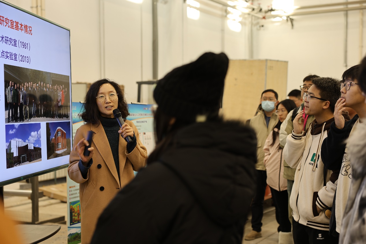 在钴-60集装箱核检测技术研发实验室,核研院教师郭肖静带领同学们近距离感受核技术在实际应用中的智慧与创新,并介绍了实验室的研究方向和最新成果。