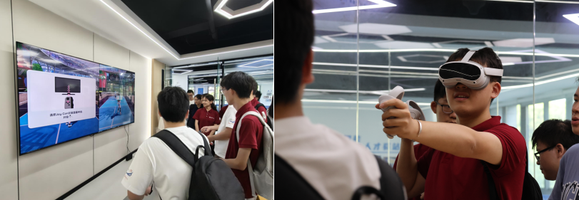 支队还走访了中飞航空,体验无人机操控,感受低空经济的活力。在数字体育体验区,队员们通过VR眼镜体验各项运动,借助智能识别技术沉浸式参与羽毛球等运动,亲身体验科技与体育、文化的深度融合。