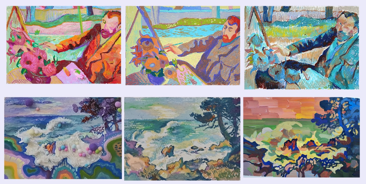 “色彩表现”课程分为循序渐进的四个部分:第一部分是对大师经典名画的解构与变体;第二部分专注于互补色的写生研习,强调对色彩对比关系的认知;第三部分是邻近色或同类色的写生练习,着重于色彩与色调间的微妙变化及层次变化训练;第四部分是色彩的自由表现。