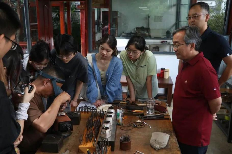 美院师生观摩工艺演示。