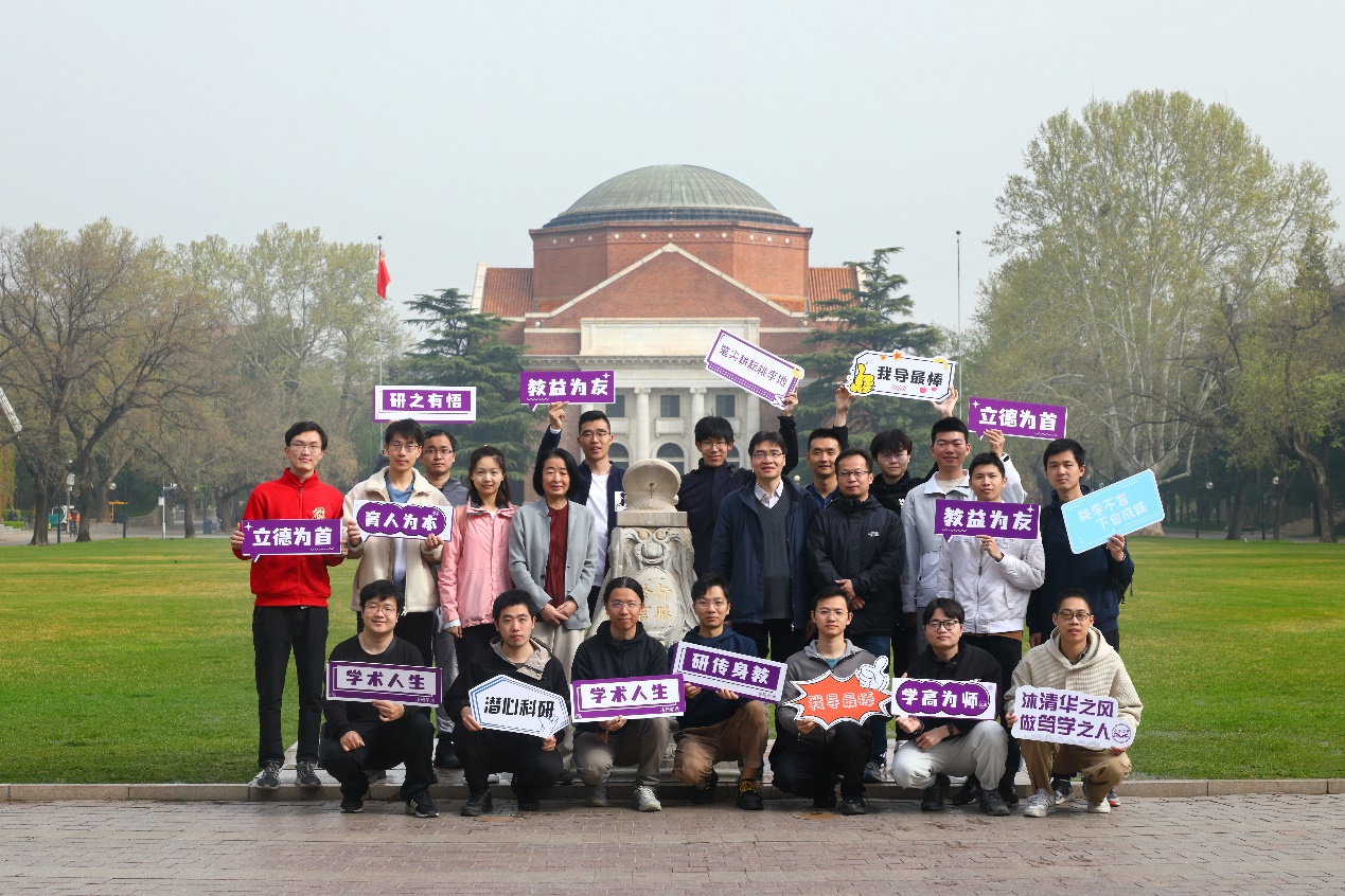 获颁乐动平台“良师益友”奖后,许春晓和同学们在日晷前合影留念。