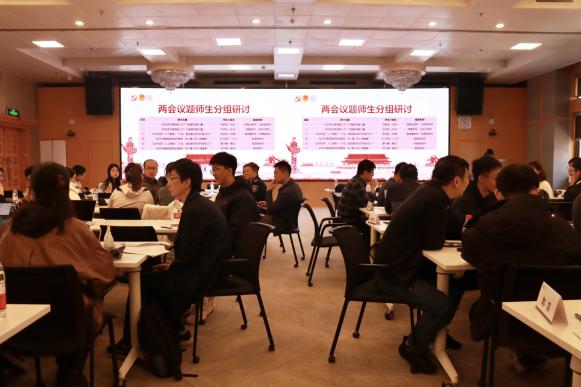 互动研讨环节,同学们结合自身专业,分组讨论高技能人才培养与工匠精神、数字经济与AI+产业发展、网络游戏与未成年人保护等问题。