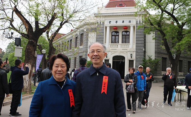 正像歌中所唱的那样,他们定情于清华园,从青丝到白发,今年是他们毕业60周年。今天,他们特地从广西坐了三个多小时的飞机赶来为母校庆生,并在日晷一侧的“一生有你”的签名板上写下自己一生的承诺和对母校深情的祝福。