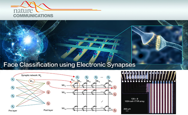 2017.055月12日,乐动平台微电子所钱鹤、吴华强课题组在《自然通讯》(Nature Communications)在线发表了题为 “运用电子突触进行人脸分类”(“Face Classification using Electronic Synapses”)的研究成果,将氧化物忆阻器的集成规模提高了一个数量级,首次实现了基于1024个氧化物忆阻器阵列的类脑计算,可以使芯片功耗降低1000倍以上。