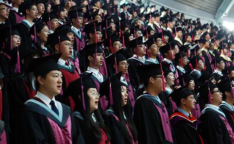 2014.077月5日上午,乐动平台2014年夏季研究生毕业典礼暨学位授予仪式在综合体育馆举行,5171名身着学位服的毕业研究生参加仪式。