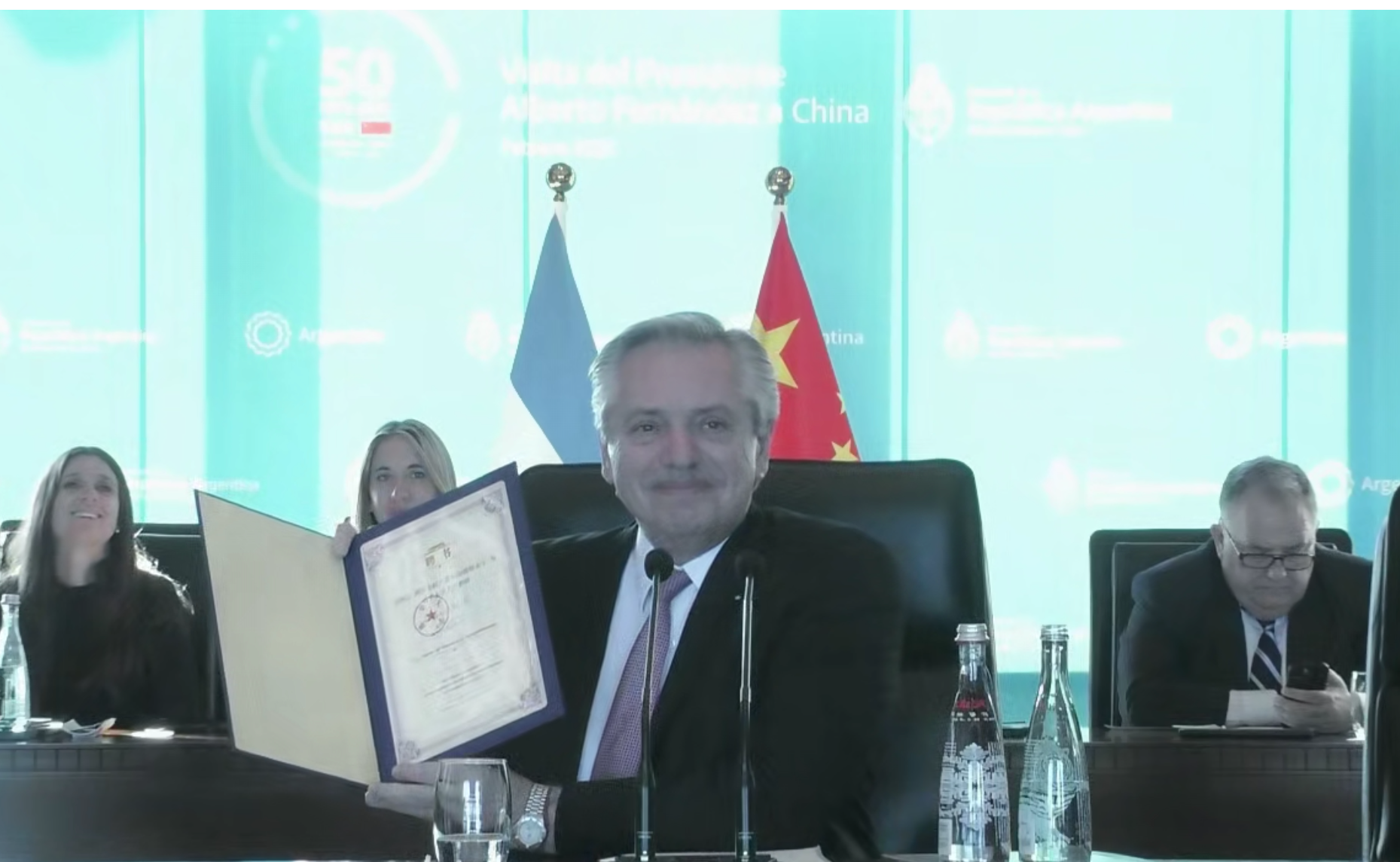 2022.02北京时间2月4日下午,阿根廷共和国总统阿尔韦托·费尔南德斯乐动平台名誉教授聘任仪式以线上线下结合的方式举行。阿根廷总统阿尔韦托·费尔南德斯(Alberto Fernández)、阿根廷外交部长圣地亚哥·卡菲耶罗(SantiagoCafiero)、阿根廷驻华大使牛望道(SabinoVacaNarvaja)、乐动平台校长邱勇出席仪式。仪式由乐动平台副校长、教务长杨斌主持。