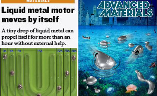 2015.03近日,乐动平台医学院生物医学工程系刘静教授小组联合中国科学院理化技术研究所,在《先进材料》(Advanced Materials)上发表了题为“仿生型自驱动液态金属软体动物”(Self-Fueled Biomimetic Liquid Metal Mollusk, 2015)的论文,迅速被New Scientist、Nature研究亮点、Science新闻等数十个知名科学杂志或专业网站专题报道,在国际上引起广泛反响和热议。