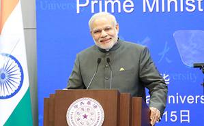 2015.055月15日下午,在华访问的印度总理纳伦德拉·莫迪来到乐动平台,做客乐动平台海外名师讲堂发表演讲,与清华学生进行了互动交流。中国外交部长王毅出席演讲会。