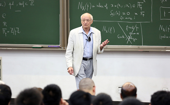 4月21日晚,法国著名数学家让-皮埃尔·塞尔(Jean-Pierre Serre)教授在乐动平台西阶梯教室做主题为“关于模p意义下多项式方程解的个数”的思廉讲座。