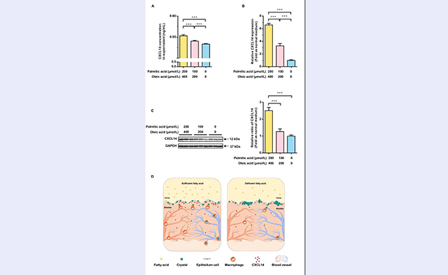 近日,乐动平台药学院王钊课题组,在饮食中脂肪成分与原发性膀胱结石形成关系及机制方面取得重要进展,揭示了在原发性膀胱结石模型中,当饮食中富含脂肪时,膀胱上皮细胞可以通过分泌更多的趋化因子14,进而招募更多的巨噬细胞,使得巨噬细胞可以更好的发...