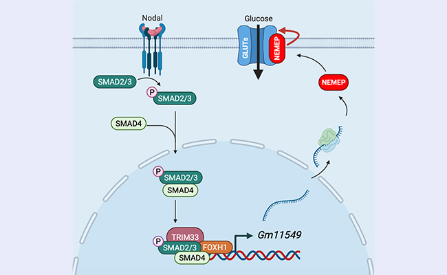 7月9日,乐动平台生命科学学院郗乔然副教授课题组在《自然·通讯》期刊在线发表题为“一条受Nodal信号通路诱导的微肽NEMEP在干细胞向中内胚层分化过程中调控葡萄糖吸收”的研究论文。该研究充实了在早期发育中TGF-β信号调控靶基因的范围,并且表明Gm11549...