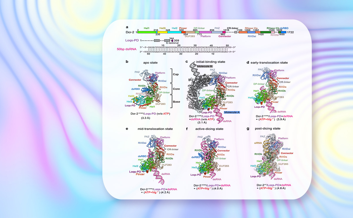 2022.07生命学院王宏伟课题组合作报道果蝇Dicer2依赖ATP剪切双链RNA结构机制