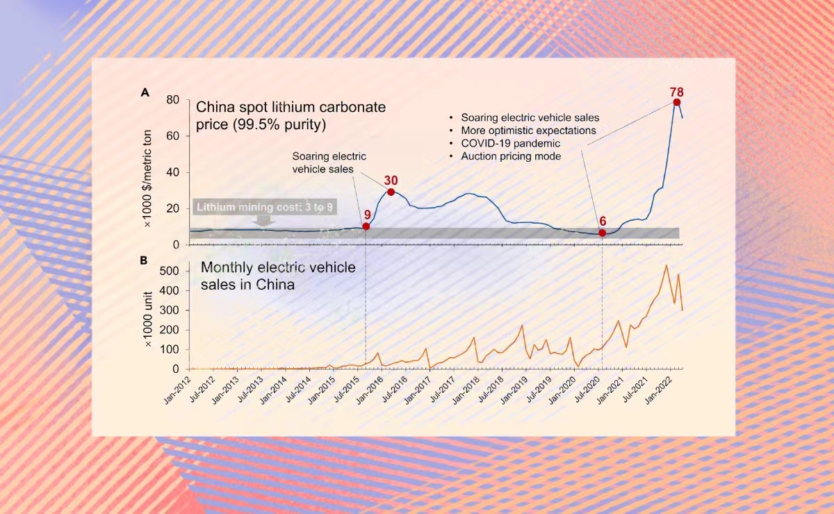 研究以锂为重点,对本轮材料价格暴涨的驱动因素进行了深度分析,揭示了其价格剧烈波动的内在机制,并对未来短期和长期的供需形势和价格走向进行了建模研究。