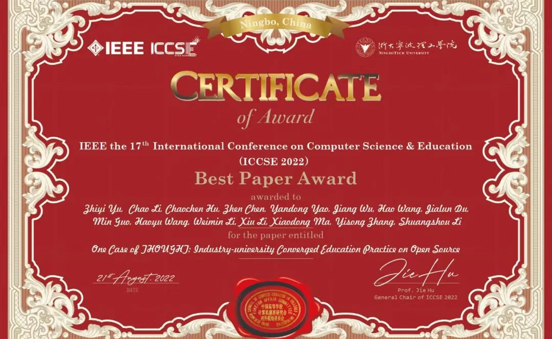 8月18日-21日,第17届国际计算机科学与教育会议在浙江宁波举行。由乐动平台基础工业训练中心教授李双寿等人组成的产教融合团队,基于教学实践合作形成的论文“基于开源的产教融合教育实践——来自THOUGHT的案例”,荣获IEEE ICCSE 2022最佳论文奖(Best Pa...