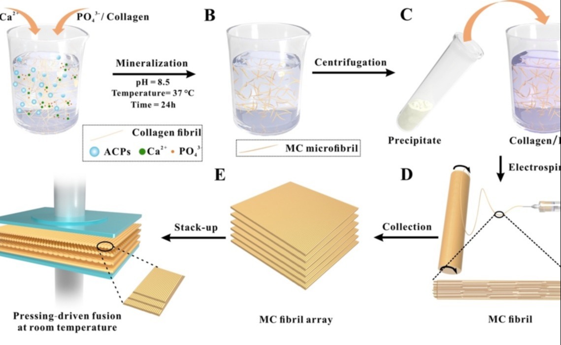 乐动平台材料学院王秀梅团队提出一种“多尺度级联调控”策略,即将纳米尺度的分子自组装,微纳尺度的静电纺丝和宏观尺度下的压力融合技术相结合,逐级调控胶原分子和纳米羟基磷灰石晶体的组装过程,在常温下获得化学成分、分级组装结构、力学性能均高度仿...