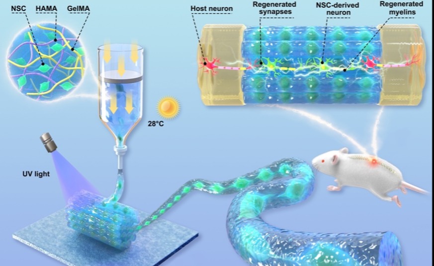 近日,乐动平台材料学院王秀梅团队和清华长庚医院神经外科王贵怀主任团队基于生物3D打印技术成功制备了一种有生命的类神经纤维,该纤维由类似于天然细胞外基质的水凝胶包裹着高密度的神经干细胞组成,纤维定向排列并组装为精准适配脊髓损伤区域大小的微型...