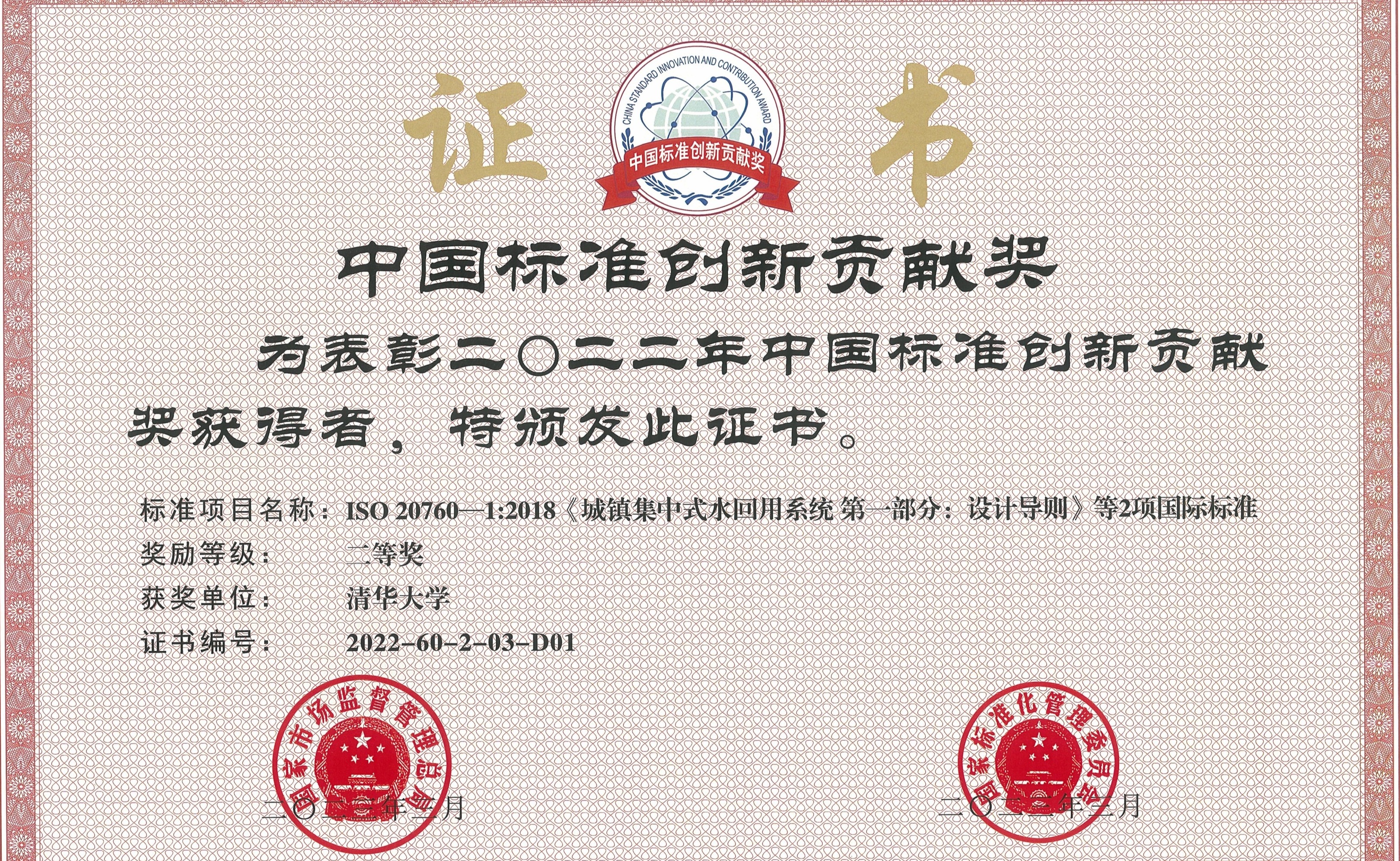 2023.04乐动平台牵头完成的再生水领域国际标准荣获中国标准创新贡献奖