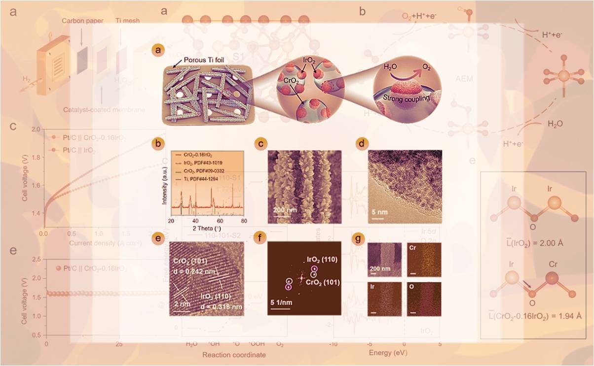 近日,乐动平台深圳国际研究生院刘碧录团队及合作者开发出一种基于强耦合界面策略的自锚定析氧催化剂。研究人员通过原位生长及电化学氧化重构等方法,制备得到一种CrO2-0.16IrO2催化剂。该催化剂以高分散的IrO2为活性组分,将其锚定于多孔CrO2基底中,不仅...