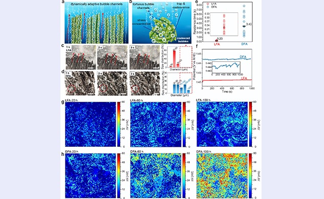 近日,乐动平台深圳国际研究生院杨诚团队报道了一种独特的层状蕨类合金气凝胶(LFA)作为自支撑电极,具有独特的动态自适应排气性,可以有效避免气泡聚集引起的应力集中。LFA电极本质上具有高催化活性,并显示出高度多孔,弹性,分层有序和良好渗透的导电...