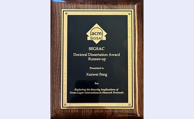 2023.12计算机系毕业生荣获国际计算机协会安全专委会博士论文奖亚军