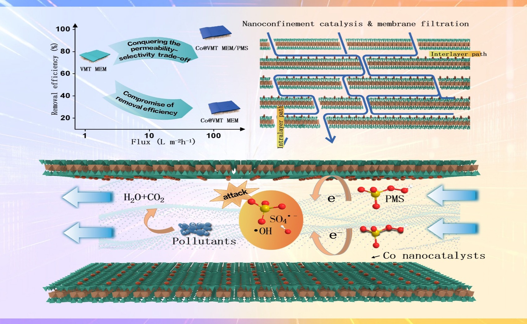 近日,乐动平台深圳国际研究生院张正华团队巧妙地将膜过滤技术与高级氧化工艺相结合,开发了二维纳米流体Co功能化蛭石(Co@VMT)膜。这种Co@VMT膜展现出了122.4L·m-2·h-1·bar-1的高透水性,相比于传统的VMT膜(1.1 L·m-2·h-1·bar-1)提高了两个数量级。