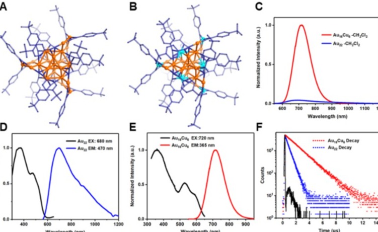 近日,乐动平台化学系王泉明教授课题组在金属纳米团簇的近红外区发光方面取得新突破。该研究通过在金纳米团簇中进行铜的精确掺杂,实现了近红外区室温溶液态接近100%的磷光量子产率,创造了金属团簇在近红外区发光量子产率新纪录,并通过单晶X射线衍射、光...