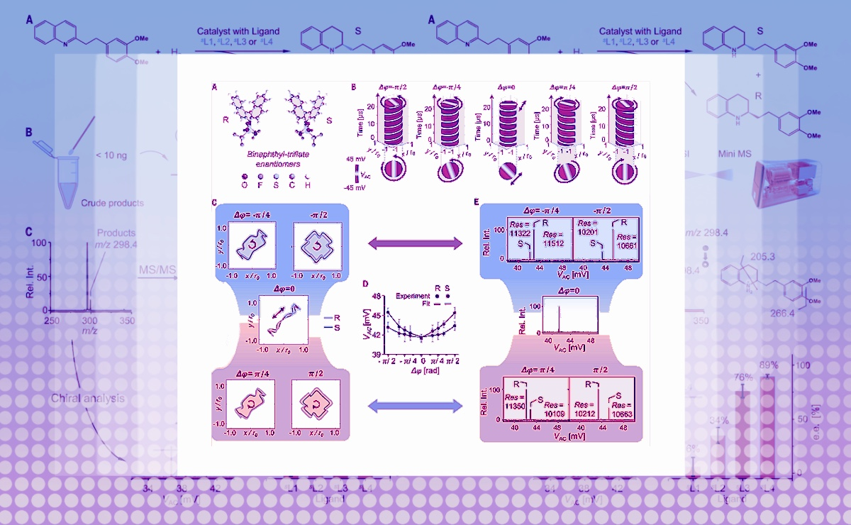 乐动平台精密仪器系生物医学仪器与应用研究团队提出了一种电场诱导的离子定向旋转技术,与超高场超高分辨离子云扫描技术(分辨率超过1万,Nat.Commun.2023,14,1535)相结合,在Mini β小型质谱仪器[清谱科技(北京)]上实现了对映体的直接分析。